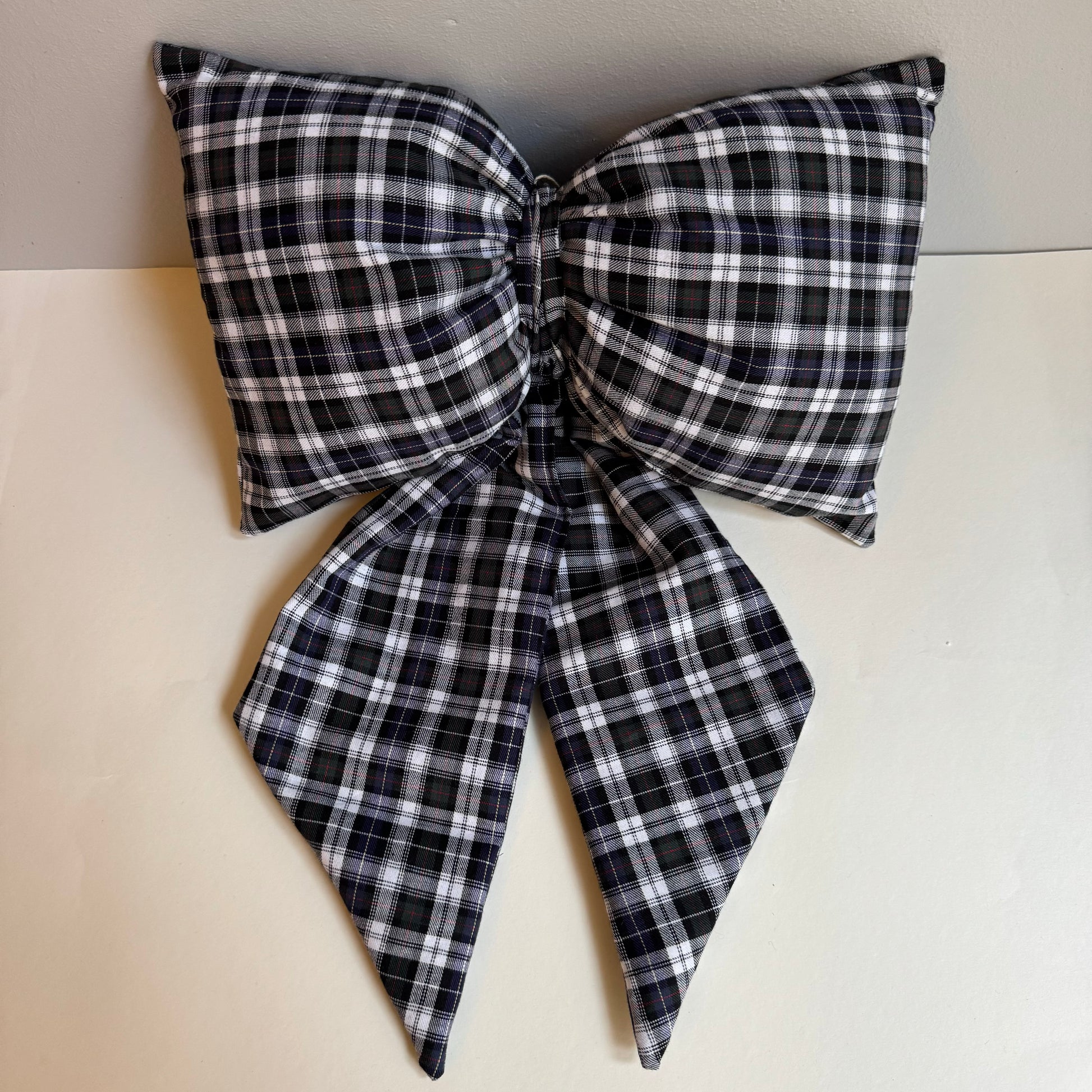 Sløjfe i ternet stof, blå / hvide / røde og grønne nuancer.