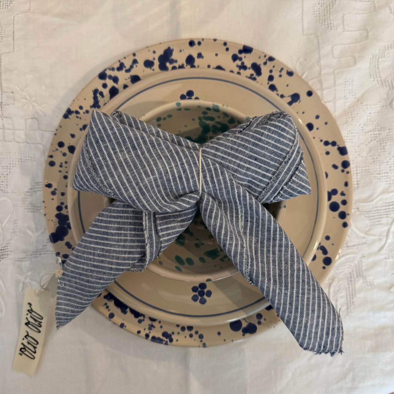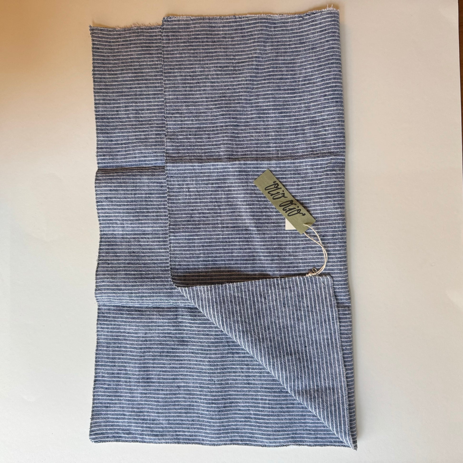 Stofserviet - hør og bomuld. Fintstribet blå og creme.